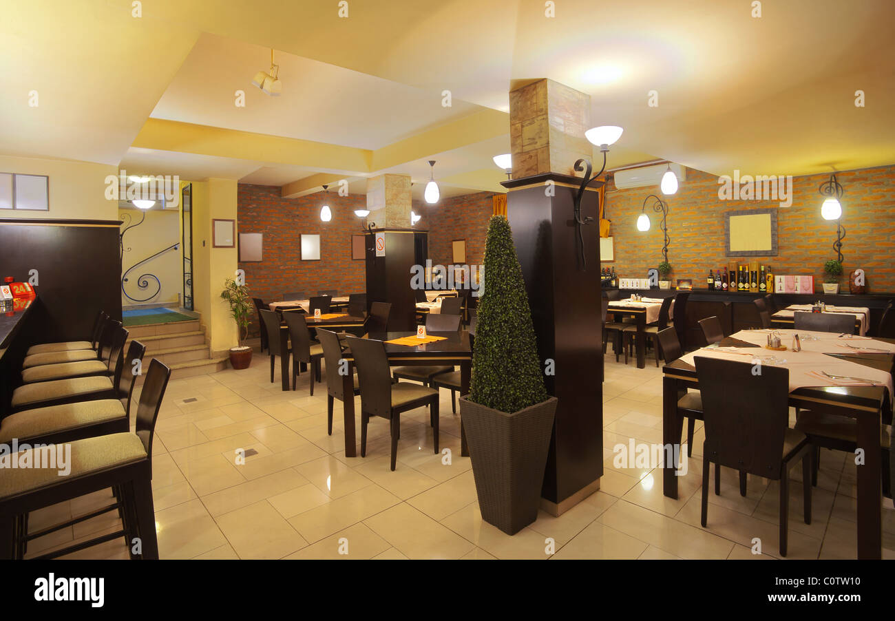 Tables Chairs And Lighting Equipment Of A Restaurant Stock Photo intended for Stylish restaurant lighting equipment regarding Home